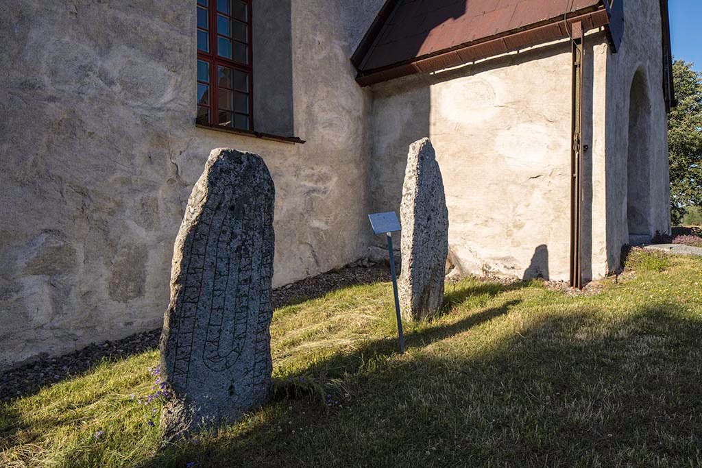 Runstenarna U 336 och U 344 vid Orkesta kyrka, Uppland Foto: Björn Hedvall
